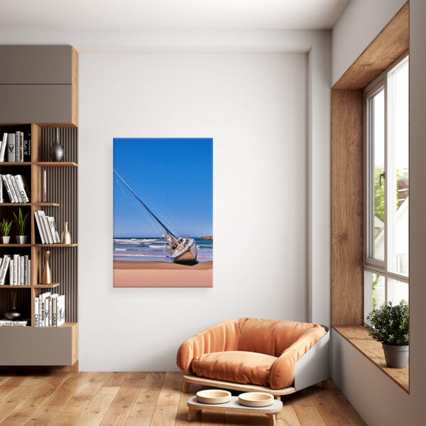 Canvas wrap or fine art print of a beached ship in Winchester Bay, Oregon.